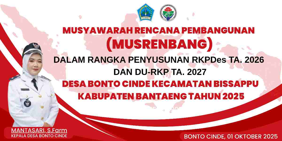 Info Bantaeng– Pemerintah Desa Bonto Cinde, Kecamatan Bissappu, secara resmi menggelar pembukaan Musyawarah Rencana Pembangunan Desa (Musrenbangdes) untuk Tahun Anggaran 2026 pada Rabu, (01/10/25). Acara yang berlangsung penuh khidmat di Aula Kantor Desa Bonto Cinde ini menandai dimulainya proses partisipatif untuk merajut masa depan desa yang lebih sejahtera.